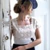 Lavender chiffon dress with floral motif embroidery in the center panel.